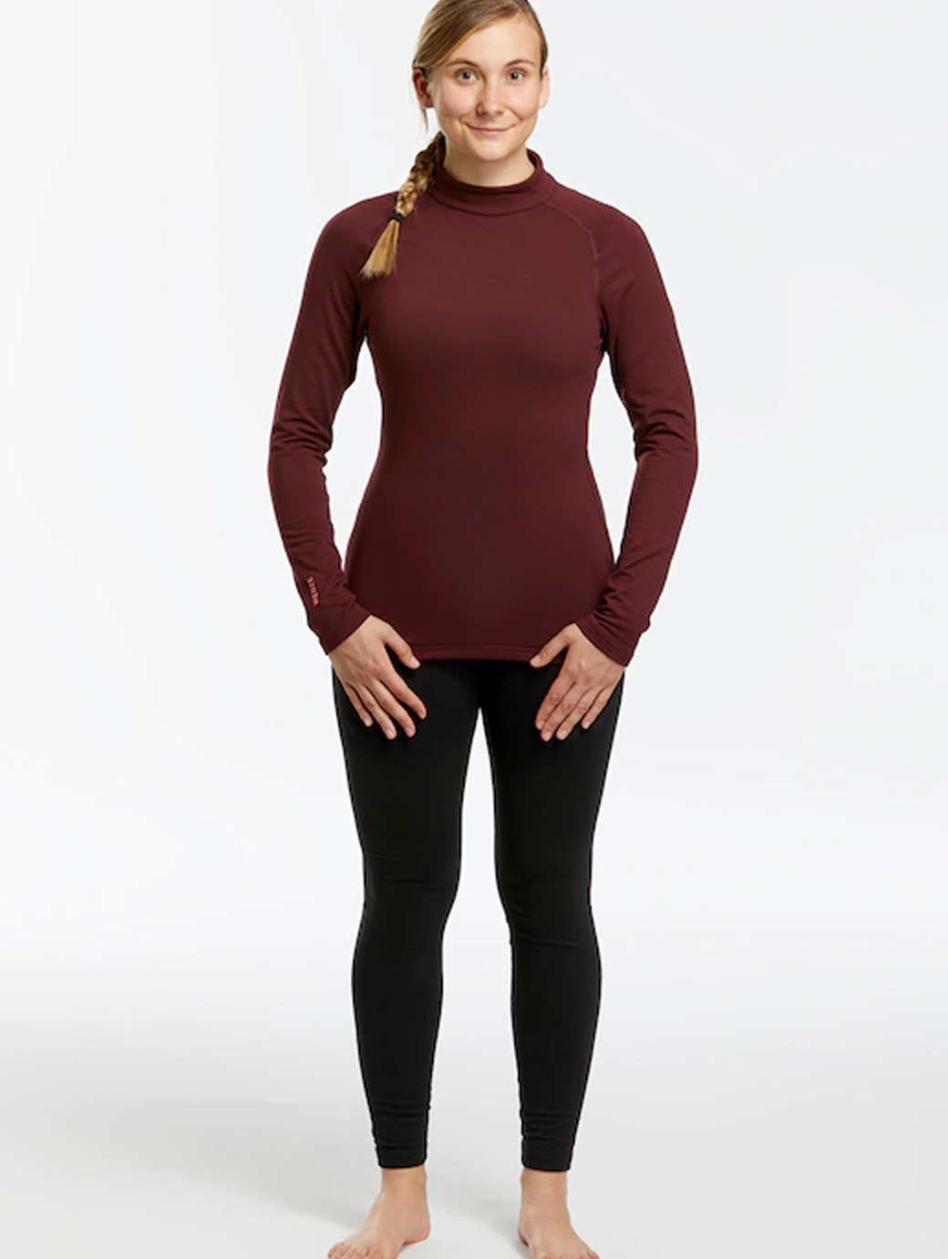 Burgundy solid thermal t-shirt, has roundneck, long sleeves